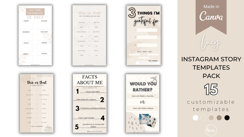 Lucy | 15 Instagram Story Templates Canva Graphics Pack | Beige Social Media Templates | Social Media Templates | Instagram Stories & Engagement | Netural Color Palette