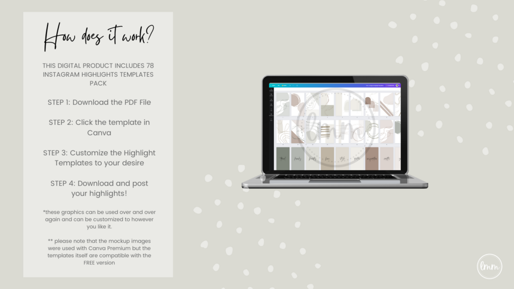 The images used for the mockups of this product are from Premium Canva. If you don't have a premium account, you can upload your own photos or use what's available to you in the FREE Canva version.