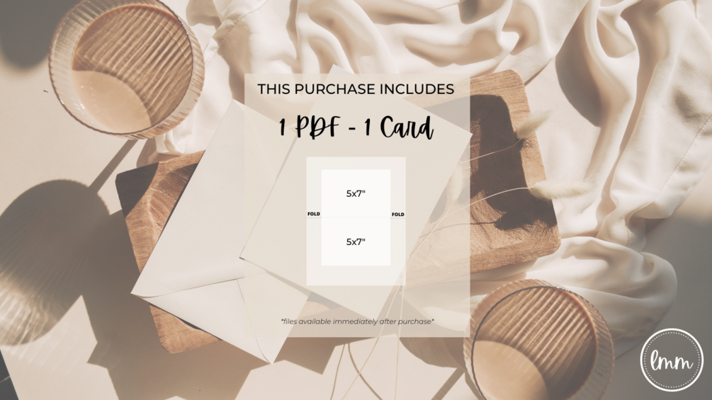 -Size: PDF is 11x8.5" which is standard printer paper size, Card size is 5x7"